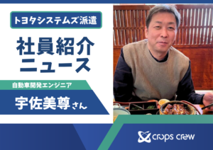 今回ご紹介するのは宇佐美尊さん。トヨタシステムズでコンサルティングエンジニアとして活躍する宇佐美さんに、日々の仕事とクロップス・クルーらしさを伺いました! これまでの経歴 クロップス… 続きを読む: ◇社員紹介ニュース vol.17◇ 宇佐美さん(コンサルティング) - ◇社員紹介ニュース vol.16◇ 伊庭さん(設計)