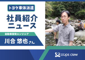 今回ご紹介するのは川合 悠也さん。トヨタ車体で企画エンジニアとして活躍する川合さんに、日々の仕事とクロップス・クルーらしさを伺いました! これまでの経歴 クロップス・クルーに新卒で入… 続きを読む: ◇社員紹介ニュース vol.18◇ 川合さん(企画) - ◇社員紹介ニュース vol.17◇ 宇佐美さん(コンサルティング)