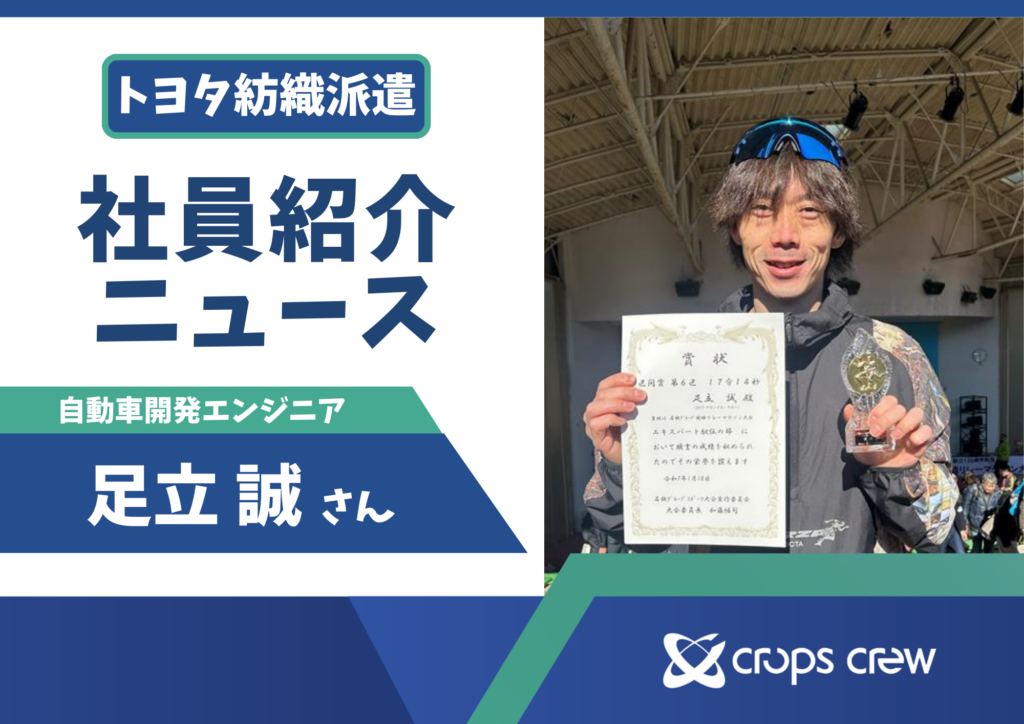 トヨタ自動車で実験・開発エンジニアとして活躍する足立さんに、日々の仕事とクロップス・クルーらしさを伺いました!