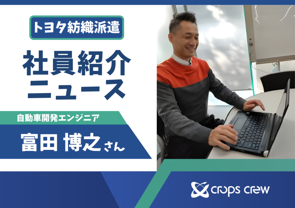 トヨタ紡織でプロダクト企画開発エンジニアとして活躍する富田さんに、日々の仕事とクロップス・クルーらしさを伺いました!