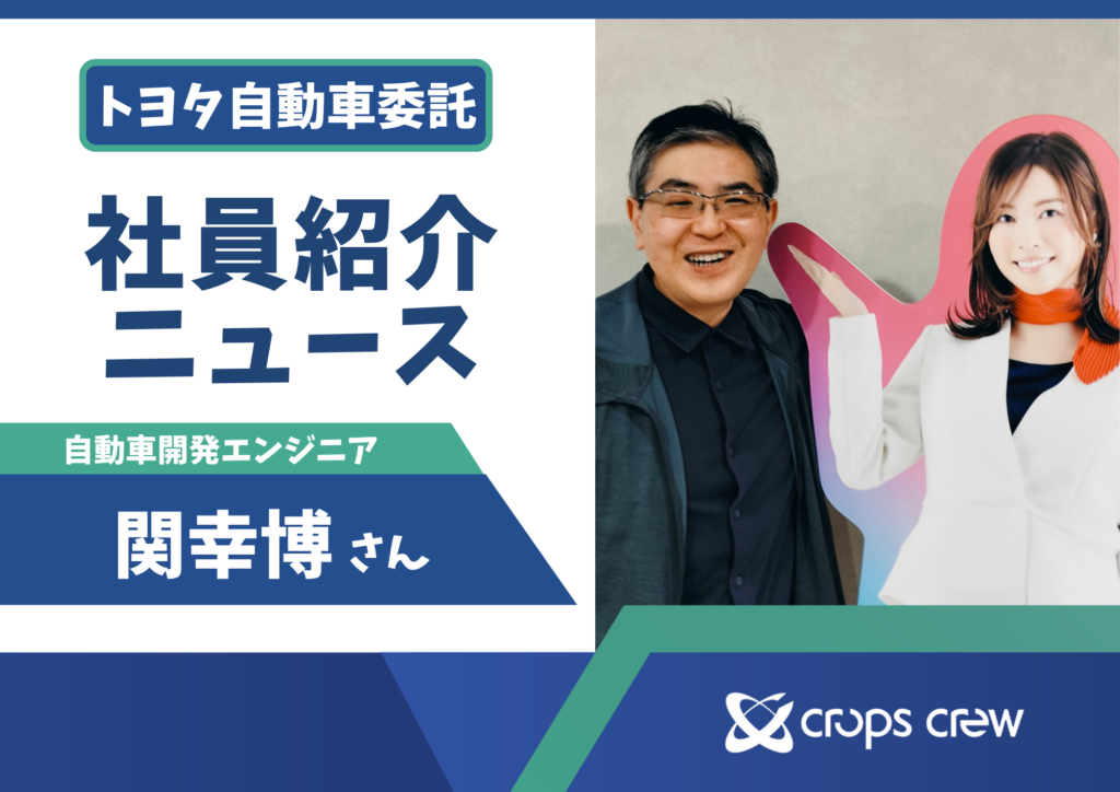 トヨタ自動車で評価エンジニアとして活躍する関さんに、日々の仕事とクロップス・クルーらしさを伺いました!