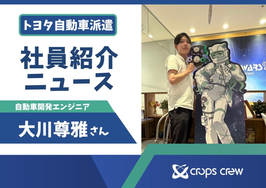 トヨタ自動車で開発エンジニアとして活躍する大川さんに、日々の仕事とクロップス・クルーらしさを伺いました!